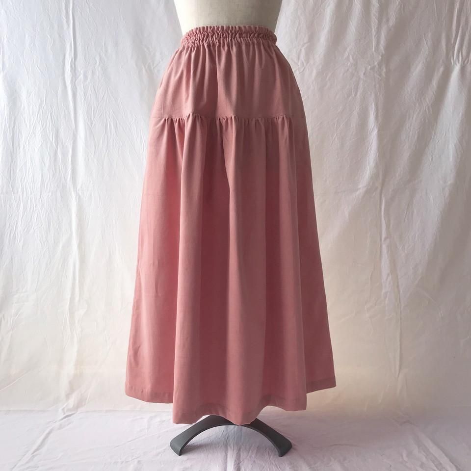 あったかベーシックな細コーデュロイのティアードスカート(ピンク)