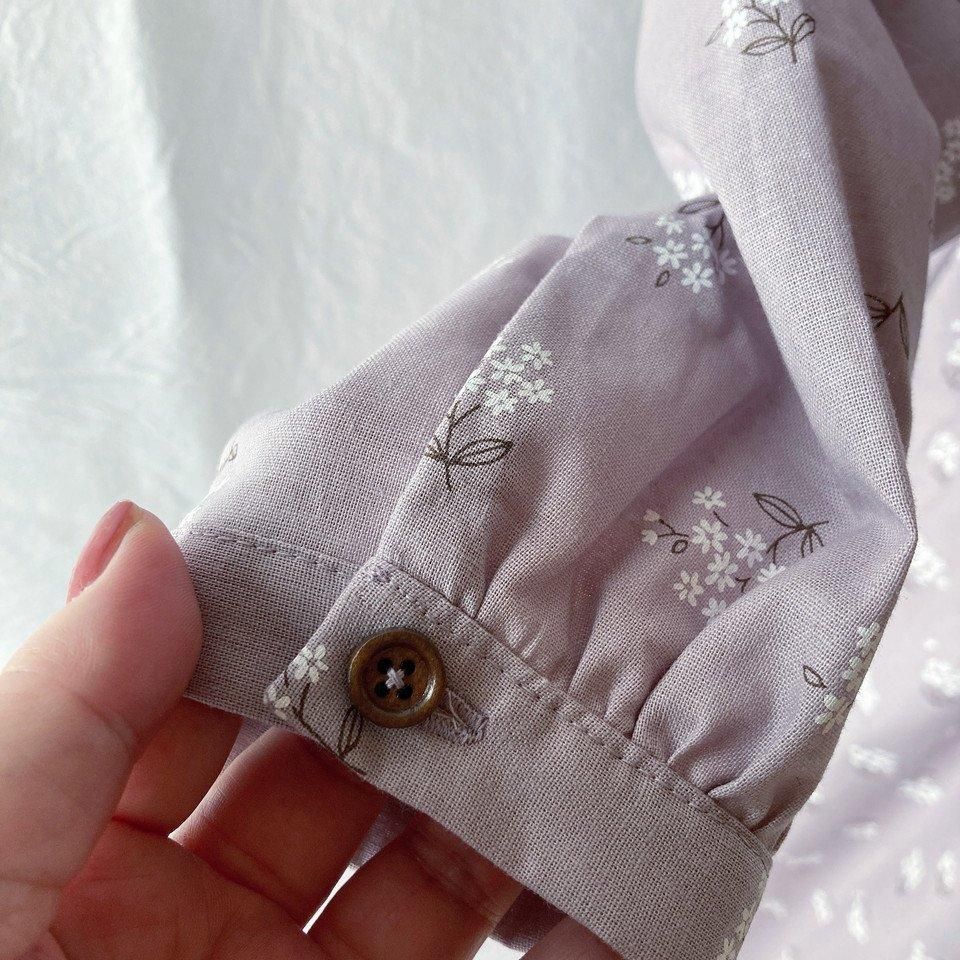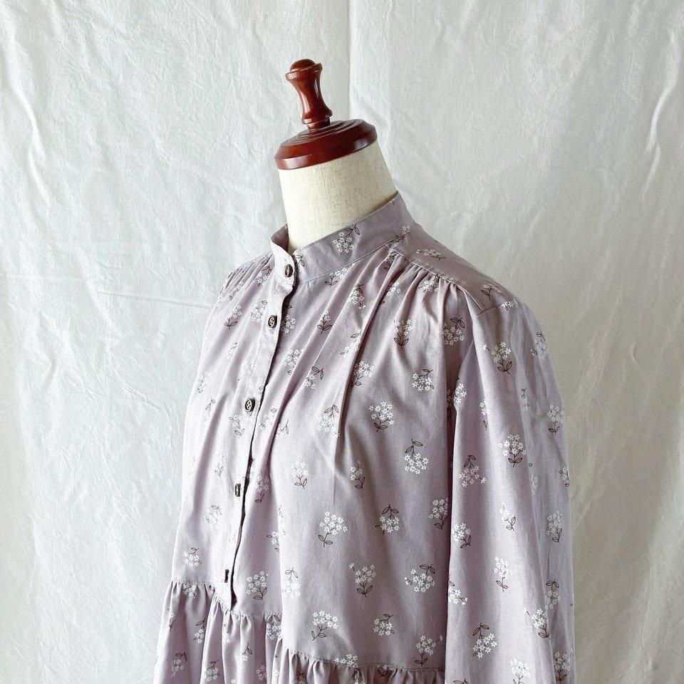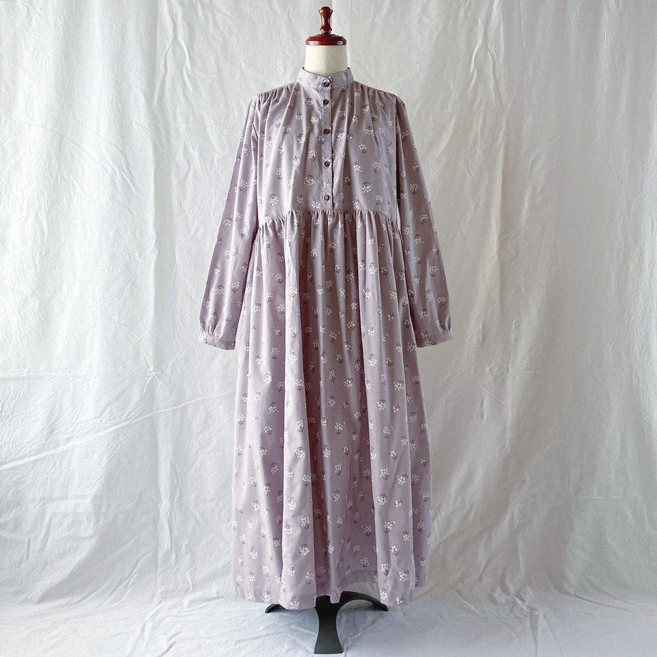 【オールシーズン】レディのためのプラムワンピース(長袖):120cm丈(野の花:小花:ラベンダー)