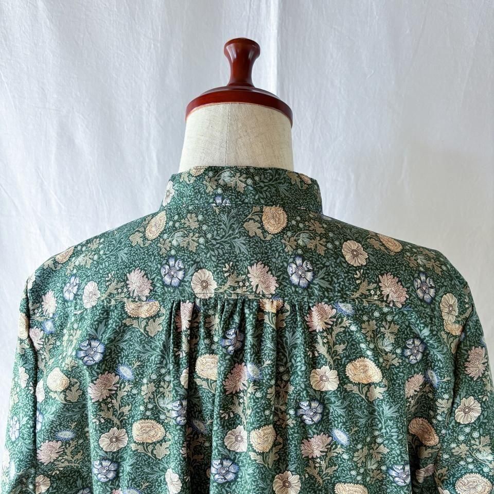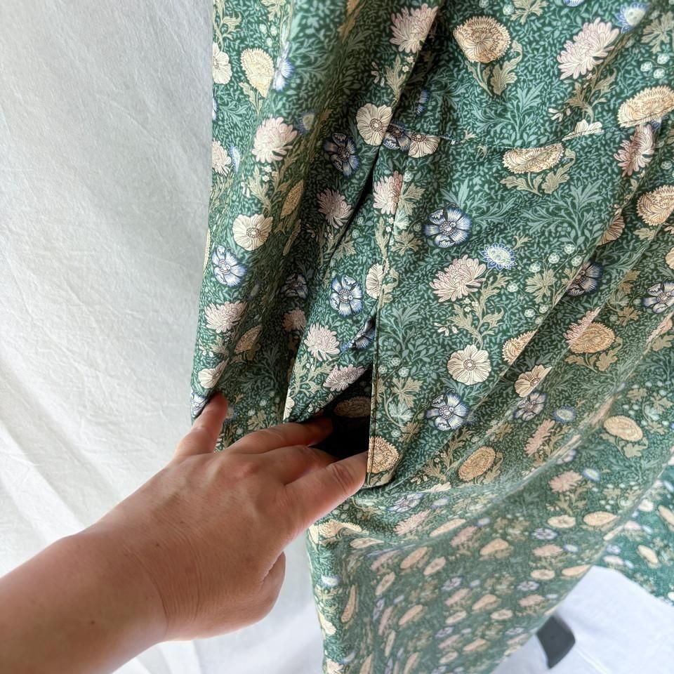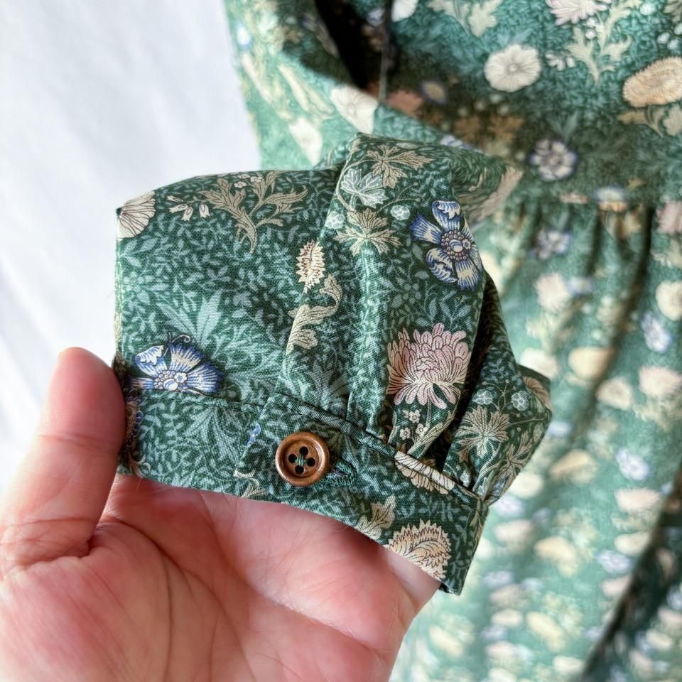 【オールシーズン】レディのためのソルダムワンピース(長袖):115cm丈(アンティークフラワー:グリーン)