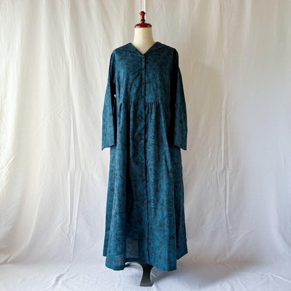 おとなのセーラーカラーワンピース(長袖):120cm丈(ナチュラルガーデン:ビリジアン)